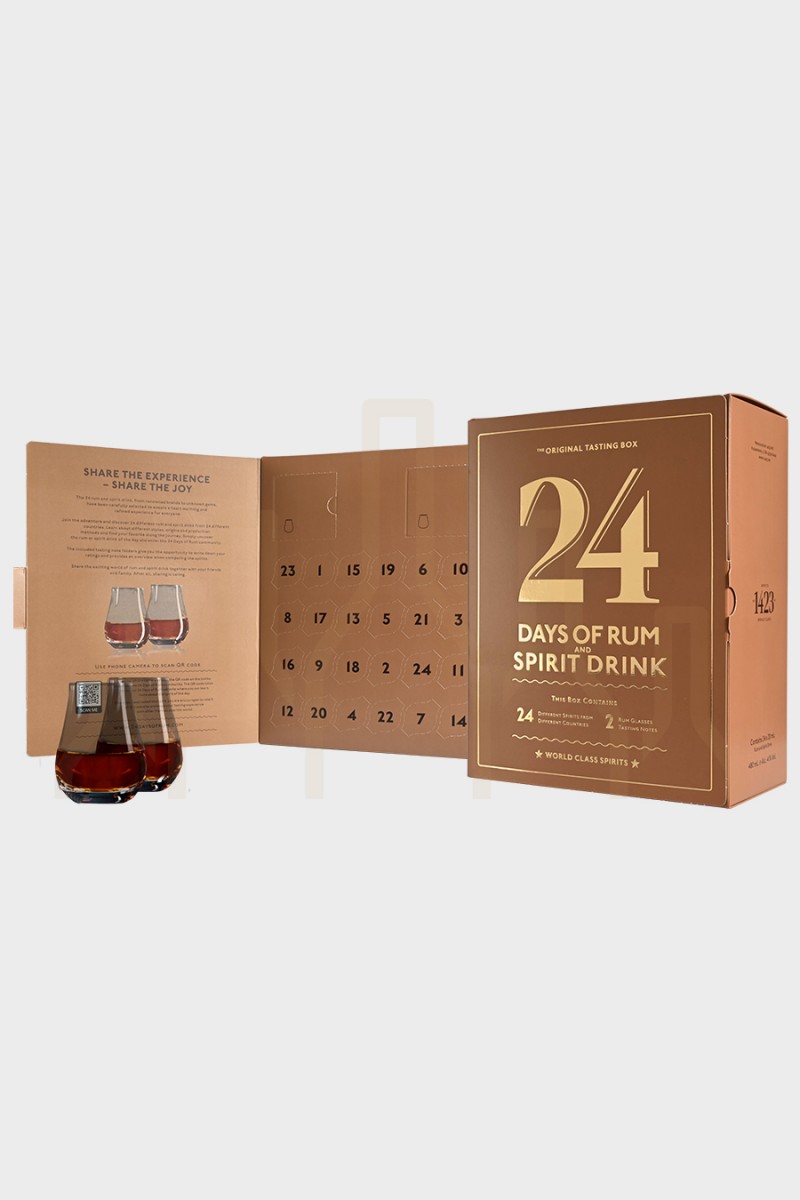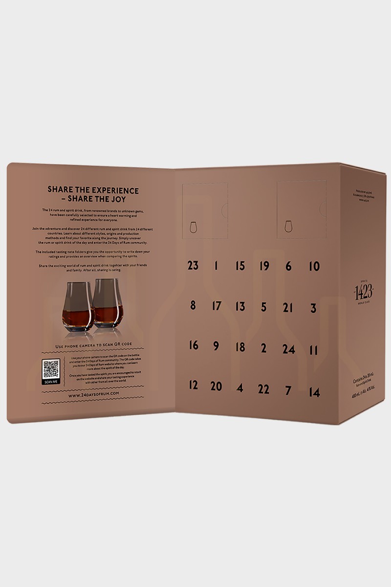Les éditions précédentes de ce calendrier bien connu se sont vendues extrêmement rapidement et cette mouture 2025 ne va pas déroger à la règle, surtout avec ce que nous vous avons concocté ! Le coffret de dégustation contient 24 bouteilles de 20 ml et chaque bouteille contient un rhum de 24 pays. Cette année, 1423 a même fait en sorte que vous puissiez profiter de rhums encore plus incroyables !
